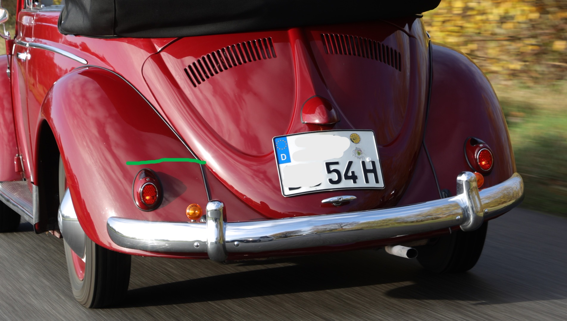Grob gesagt ist die Oberkante vom Rücklichtgehäuse unterhalb einer gedachten horizontalen Linie die durch den Knick des Kotflügelkeders geht.