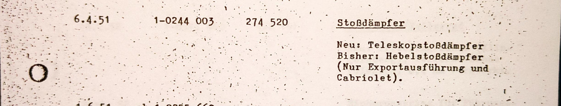 Ja, genau. Es gibt 4 Seilängen: bis Juli 1955 mit Hebelstossdämpfer:: 3031mm, mit Teleskopstossdämpfer 3131 mm (beide ganz nach vorne), ab August 1955 bis Juli 1957: 1920 mm, ab August 1957 (Rechteckkäfer): 1740 mm. Nur diese letzte wird von vorne eingeführt:Hallo Ingo