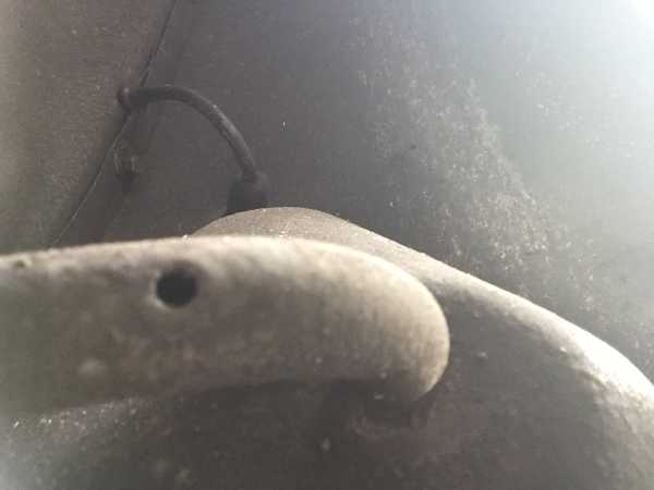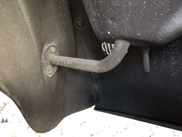 Außerdem wird das Röhrchen Karosserieseitig am Seitenteil mit 2 M6 Schrauben befestigt. Diese Befestigung erfolgt unten kurz über der Stoßstangenaufnahme, dort ist auch eine entsprechende Ausprägung im Blech (eine plane Auflagefläche).