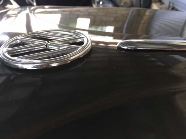 Bestelltext bei Werk34 war: Haubenzierleiste 15 mm, 940mm lang, für Fahrzeuge mit Wappen. Bestellnummer: 853 133 505 F