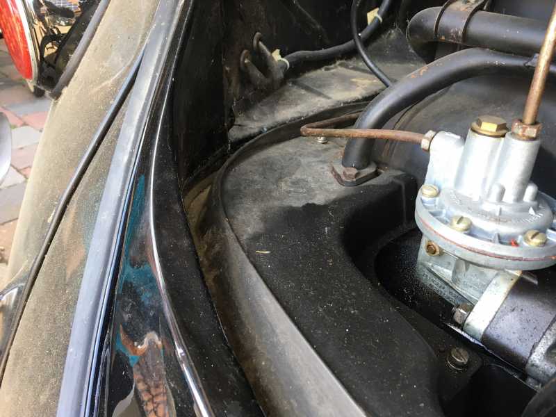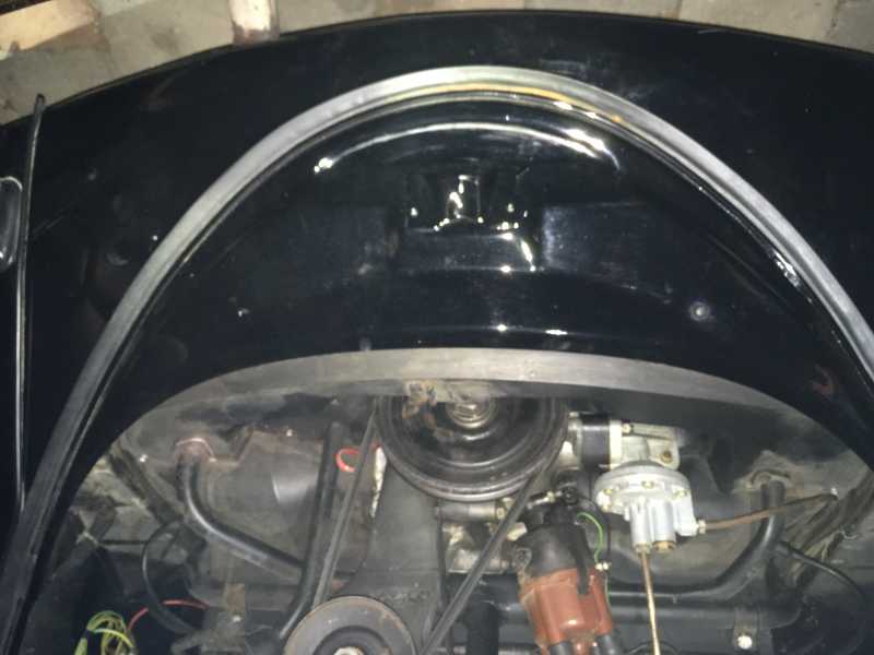 Auf jeden Fall ein Abschlussblech nach 1960 (für 34PS). Vielleicht wurde das Blech zu tief eingesetzt, doch dann müsstest du auch Probleme mit der Motorhaube haben, oder hier wurde auch etwas verändert?!?