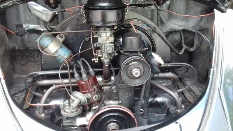 Von den Anbauteilen (Vergaser, Verteiler, Luftfilter, etc.) sieht er nach dem originalen 30 PS-Motor aus, ich gehe aber davon aus, dass die 30 PS - Anbauteile einfach an einen 25 PS - Block montiert wurden.