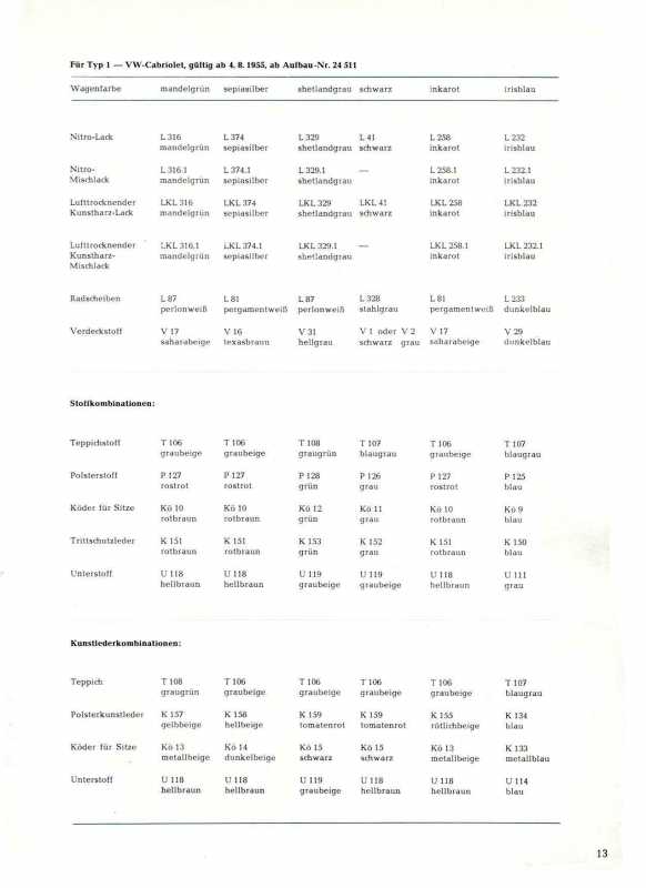 Frage Farbkombination Karosse/Innenausstattung Käfer Cabrio