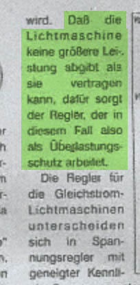 Den Regler den ich gemeint habe ist einstellbar,und kann damit den Nennstrom auf den Lichtmaschinen Wert begrenzen. Auch sind laut alter Fachliteratur Lichtmaschinen im KFZ 50% dauerüberlastbar (das erschließt sich mir auch nicht) Quelle kann ich aber suchen.