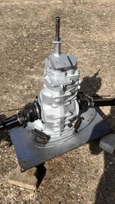 Ich habe das falsche Getriebe zurückgebracht und gegen ein Anderes getauscht. Da ich keines mit einer passenden Nummer aus dem 54er Baujahr gefunden habe, ist die Entscheidung auf ein 56er teilsynchronisiertes Getriebe gefallen. Anhand der Nummer müsste das hinkommen.A-889633. Es war zwar noch eines mit einer 317XXX da aber das müsste ein unsynchronisiertes aus ca. 51-52 gewesen sein und sah ziemlich mitgenommen aus. Es ist jetzt so wie es ist - das kommt jetzt rein. Habe es gereinigt, Achsrohre entrostet und mit RAL 9006 Weissaluminium und schwarzer Rostschutzfarbe etwas aufgehübscht. Gibt es für die Mutter der Bremstrommel zu lösen ein Spezialwerkzeug um die Trommel entgegengesetzt zu arretieren oder festzuhalten ? Oder einfach ein Flacheisen im richtigen Lochabstand aufschrauben und gegenhalten ? Das wäre der nächste Schritt um die Trommeln und Bremsbeläge zu erneuern. Danach noch die Gummimanschetten und Getriebehalterung mit Gummis erneuern und fertig.