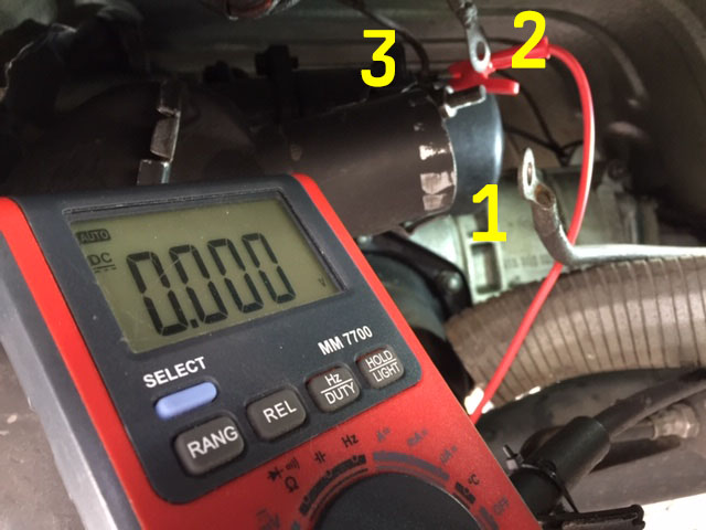1= Dauerplus von Batterie (deswegen Minuspol abklemmen). Der Anlasser zieht extrem viel Strom deswegen ist er mit einem dicken Kabel direkt mit der Batterie verbunden.