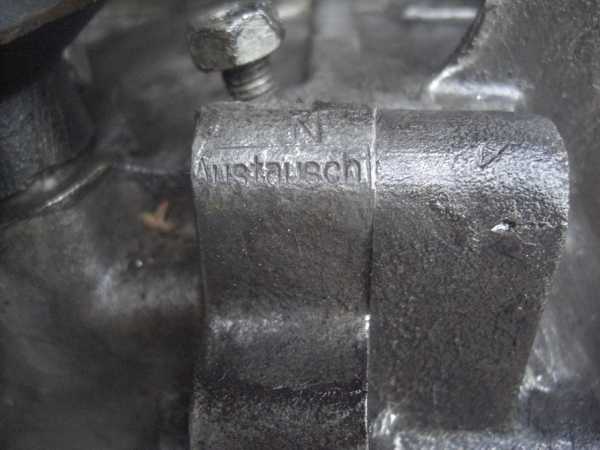 Vor einigen Wochen habe ich mir einen 30 PS Motor gekauft aus dem Jahre 1956. Die Motornummer ist 1513867. Beim reinigen fielen mir Stempelungen auf ( Rechteck mit Schriftzug " Austausch" ) auf. Des weiteren auf dem angegossenen Lichtmaschinenfuß noch eine weitere Nr. 1467842 die dort seitlich eingeschlagen ist. :huh: Kein X zu finden. :S
