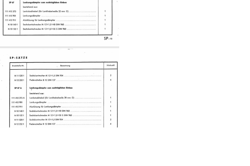 Schon im ETK 1956 wurden zwei SP-Sätze erwähnt, "Lenkungsdämpfer zum nachträglichen Einbau", SP 67 und SP67A.