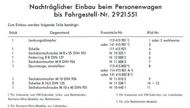 Vielleicht konnte mann doch "einfach"die Einbauanweisungen vom "SP Satz 67" folgen? Ziemlich detailliert, bebildert, mit Mass- und Winkelangaben und auch zwei verschiedenen Ausführungen von den Nachrüstlenkungsdämfer (gleiche Teilenummer!). Satz mit Klemmschelle. Schon hier erwähnt: s. Technische Mitteilung V1 , Archiv TM-0211
