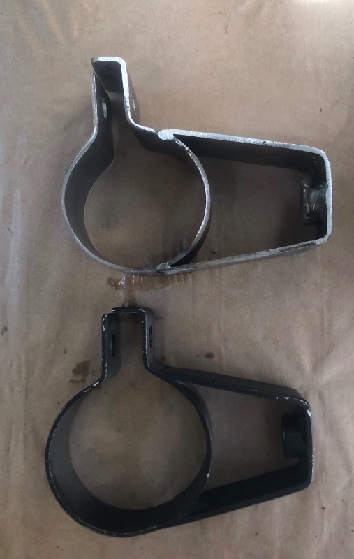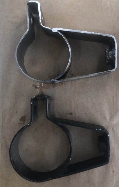 Der hier angesagte Halter für den Lenkungsdämpfer aus Österreich ist angekommen, und passt garnicht. Er ist im Durchmesser viel zu groß. Der schwarze Halter(untere) ist aus Österreich.