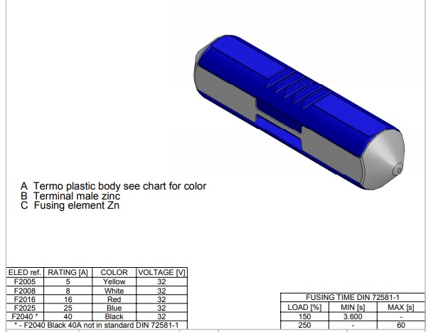 Da die Dimensionierung einer Sicherung immer etwas höher sein sollte, als die maximale Last eines Stromkreises, habe ich pro Schaltkreis für jeweils Abblendlicht und Fernlicht eine 20A-Sicherung angedacht, was dann insgesamt 40A sind.
