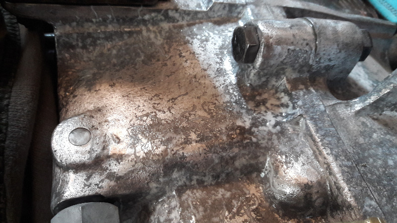 Aktuell will ich nun das Gertiebe mal angehen (schon geöffnet wg. Lagerschaden). Die Getriebegussteile sind tiefgrau, an manchen Stellen weißliche Oxidation.
