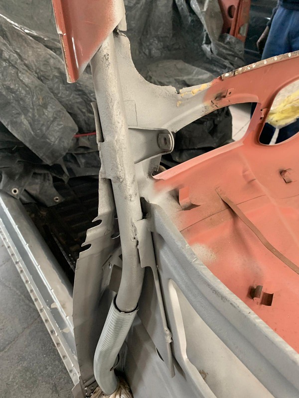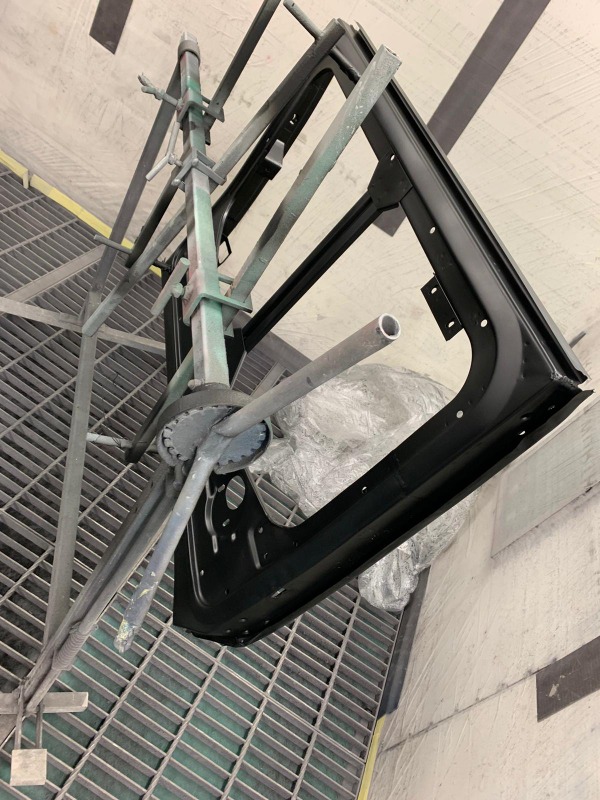 Türen baut er auch um.Hier ist die Brezelgrundlage günstiger.So wird er die doch arg gebeutelten originalen Türen wieder komplett aufarbeiten.Die oberen Scharniere habe ich ausgebohrt.Passenden neuen Ersatz habe ich beigestellt.Die unteren sind auf das zweite Übermaß vorbereitet.Er hat auch Bolzen für das dritte Übermaß liegen.Bevor die neue Türhaut montiert wird,wird die komplette Fensterhebermechanik dahingehend getestet ob alles exakt läuft und die Endpositionen richtig erreicht werden.