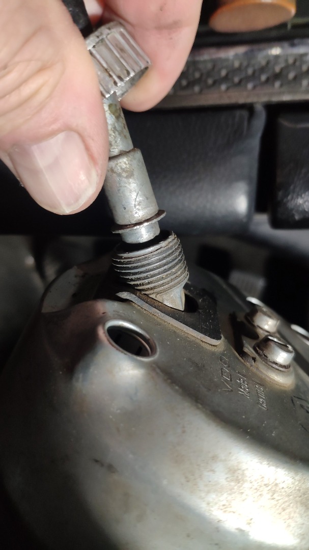 so richtig weiß ich auch keinen Rat außer länger auf die Wirkung von Caramba zu warten und etwas fester zu ziehen. Ich hatte bei meinem Oval Standard das Problem das die Welle kaputt ging. Nach der zweiten Welle habe ich dann am Tacho geforscht. Da gibt es eine Eingangsgetriebeübersetzung die man rausschrauben kann. Sie saß fest. Nach zerlegen und Ölen funktioniert es seit dem perfekt. Seit dem bekommen Tachos von mir einen bis zwei Tropfen Öl an die Stelle bevor die Welle eingeschoben wird. Ob man das Teil mit Tachowelle ausschrauben kann mußt du selber nachsehen.