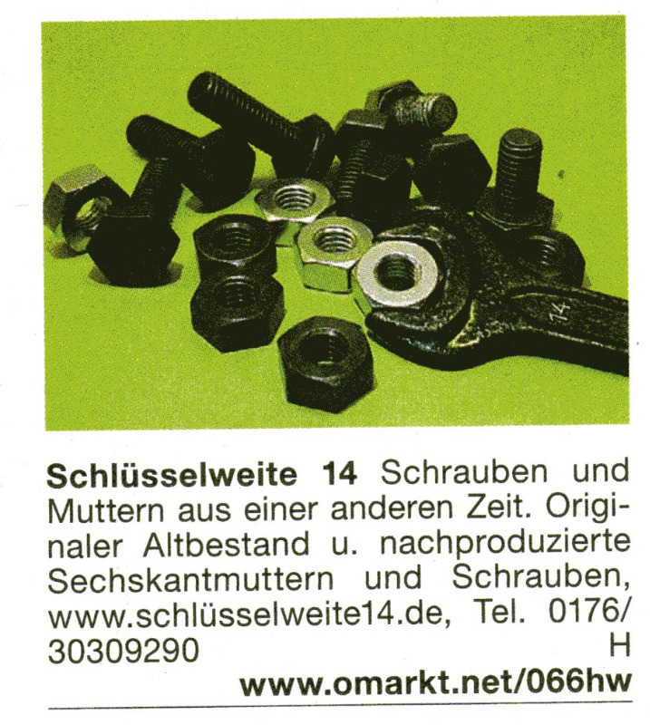 Schlüsselweite 14.de nimmt 1€ für eine Schraube und 50ct für eine Mutter