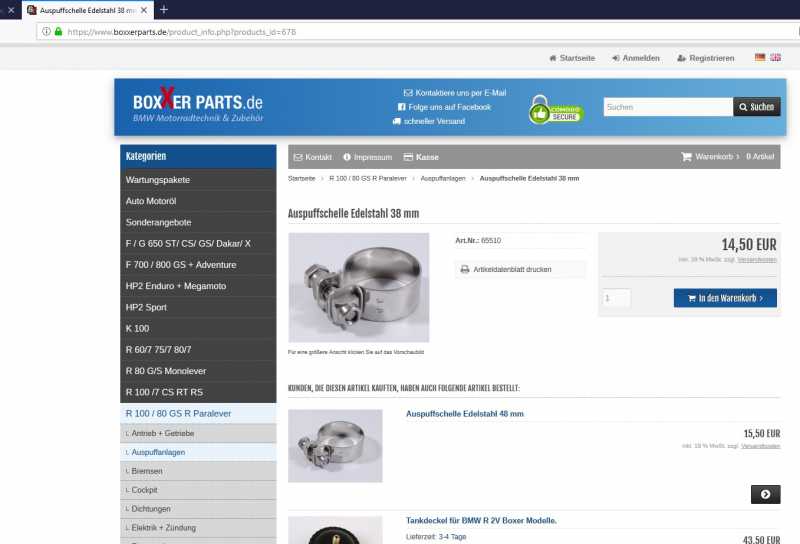 Beim CSP Auspuff in V2A ist aber eine Schelle wie Brezelkäferauspuff erforderlich. Ich habe diese in V2A gefunden..... Boxerparts.de ist Motorradtechnik.....