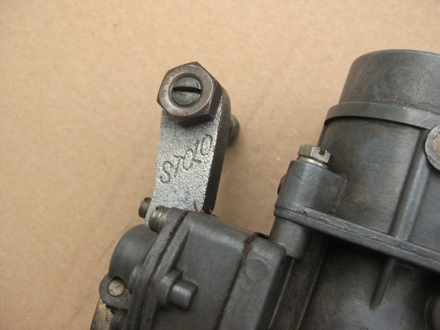 Auf den sehr dünnwandigen Ansaugrohren sind keinerlei Angaben vorhanden. Auf den direkt an die Vergaser angeschraubten beidseitigen Widerlagern/Anlenkungen (Alu-Guss) für das Gasgestänge erkennt man den Schriftzug STOLO (vgl. Fotos).