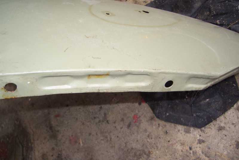 Des Weiteren einen frühen Kotflügel vom Zubehör und den gab es mit Bohrungen zwar für die Ovalleuchten aber ohne Sicke. Ist auch an meinem Wagen verbaut.