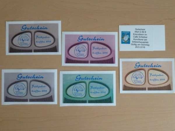 Somit hatten wir auch genügend Zeit, uns anzumelden und ein erstes Gefühl für die gute Organisation und das Treffen zu bekommen. Neben einer prall gefüllten Tasche mit diversen nützlichen Dingen wie Schmierstoff, Verbandkasten, Felgenreiniger, VW-Kekse, VW-Bulli-Nudeln, VW-Tasse, etc. bekam jeder eine Mappe mit Informationsunterlagen über u.a. das Programm, die Veranstaltungsorte und insgesamt sechs Gutscheine. Die sichtbar hohe Anzahl der Mitwirkenden bei der Organisation machte neugierig, was alles auf uns zukommen wird.