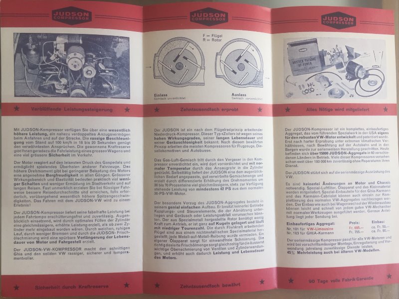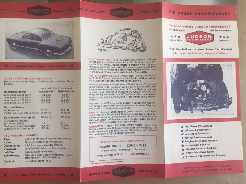 in unserem BFV Leserservice gab es Nr. G 07 Einbauanleitung Judson Kompressor 10 Seiten und G 18 Pprospekt des Bremer Importeurs 4 Seiten.