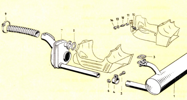 Im Ersatzteilkatalog von 5.49 ET 418 Kraftstoffbehälter Auspuff Warmluftleitung Bildtafel 10 sind Wärmetauscher und Warmluftführungsunterteil zusammen abgebildet.