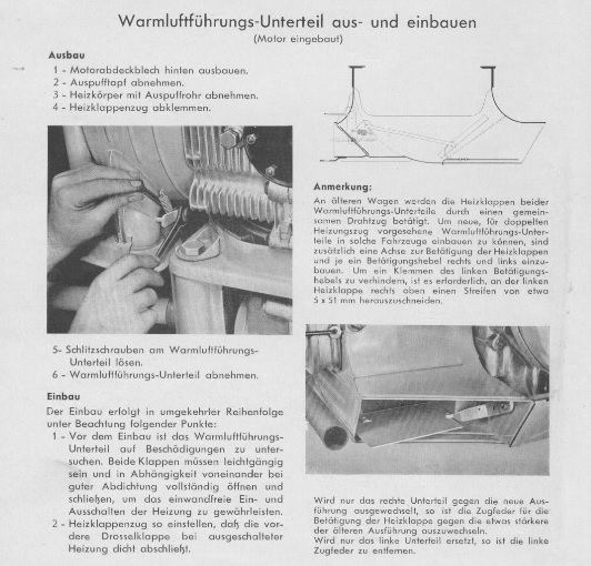 In September 1950 finden sich dann die neueren Varianten. Hiervon benötige ich das rechte Warmluftführungsunterteil .