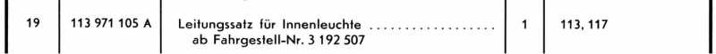 113 971 055b Leitungssatz Schalttafel Fahrgestell.Nr. 1-929746 – 1600439 / BJ 1958