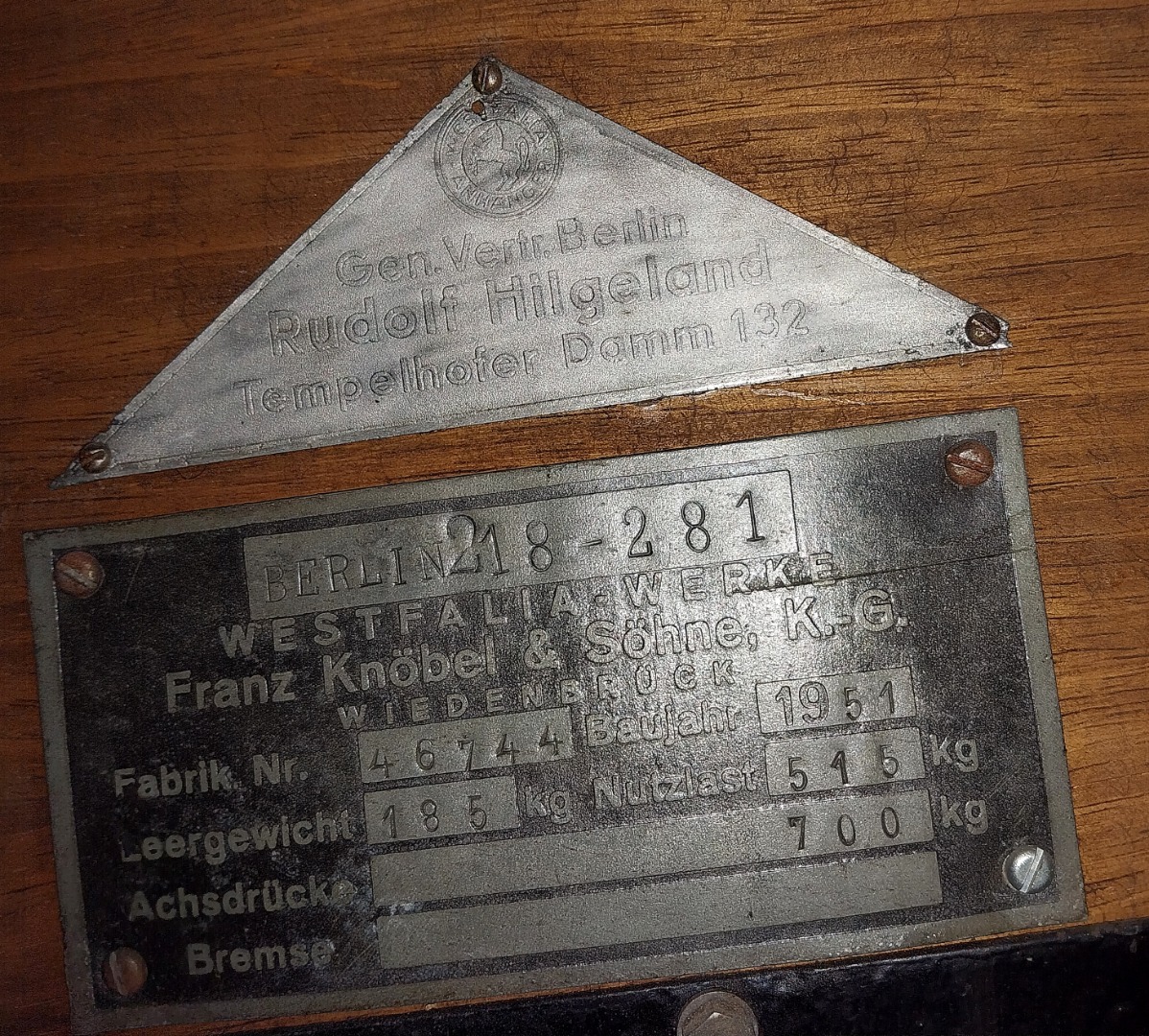 Wir haben beschlossen, uns von unserem Westfalia zu trennen. Baujahr 1951, Erstzulassung 01.52, drei Vorbesitzer, seit 1982 in Peters Besitz. Der originale Anhängerbrief ist vorhanden und gültig. Der Anhänger ist derzeit zugelassen, HU ist aber abgelaufen. Größtenteils fertiggestellte Restauration. Holzarbeiten und Technik wurden gemacht, der Deckel wurde von einem Tischler mal nachgebaut, da der Originale völlig vergammelt war. Derzeit steht der Hänger oben in einem Schwerlastregal. Daher sind nur eingeschränkt Fotos möglich. Schreibt uns an oder meldet Euch telefonisch bei uns, wenn Ihr mehr wissen möchtet. Tel: 030/6863677, Email: info@peter-ebeling.de.