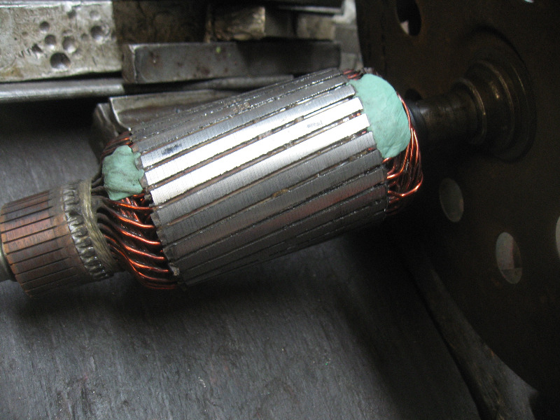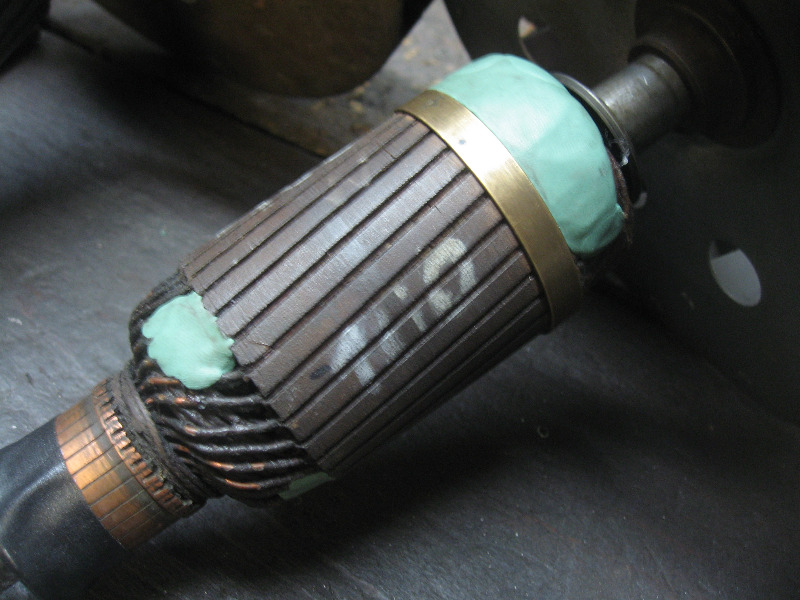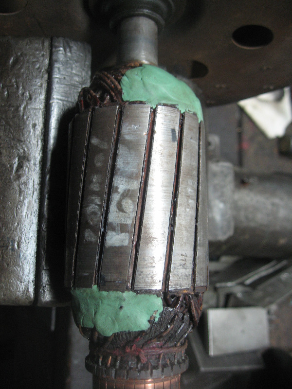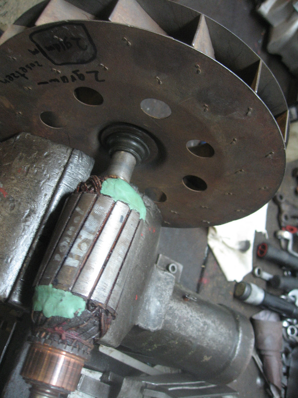 Auf den Bilder könnt Ihr erkennen wieviel "Wuchtkitt" (Mit Bleistaub versetzter 2 Komponentenwerkstoff) notwendig waren um Anker und Lüfterrad ausgewuchtet zu bekommen. Auf den Lüfterrädern mußten noch zusätzlich abgewogene Blechstücke aufgepunktet werden.