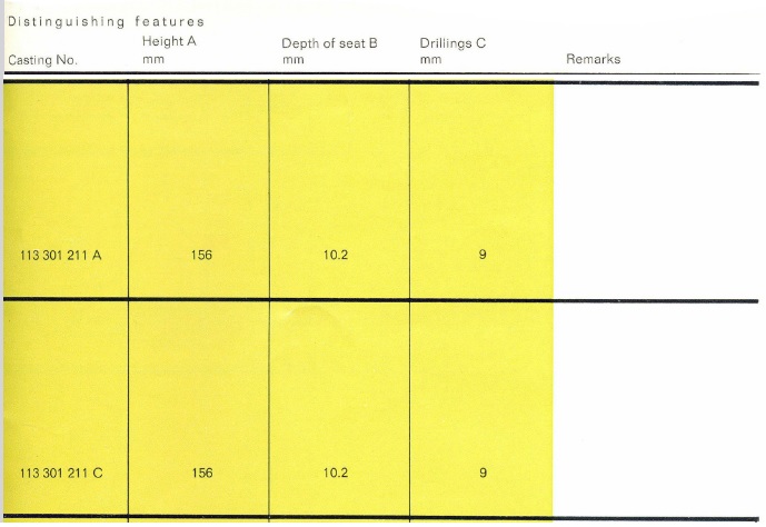 Das Schaltgehäuse des Teilsynchrongetriebe änderte sich ab Fgstnr: 2528667. Gleichzeitig änderte sich der Schalthebel im Gehäuse und die drei Schaltstangen. Die ET nummer des Schaltgehäuses wurde jetzt 113 301 205 A. Genau ein Jahr später Fgstrn. 3192506 wurde wieder das Gehäuse geändert. Es hat jetzt die Nummer 113 301 205 C. Die Innereien blieben aber gleich, bis zum Ende des Teilsynchrongetriebes für den Standart September 1964. Wer kennt den Unterschied dieser beiden Gehäuse?