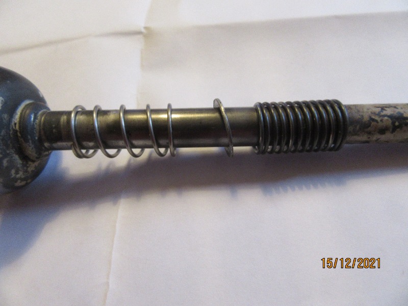 Im Bild ist rechts die Originalfeder, in der Mitte die Beilegescheibe und links die neue Druckfeder zu sehen.