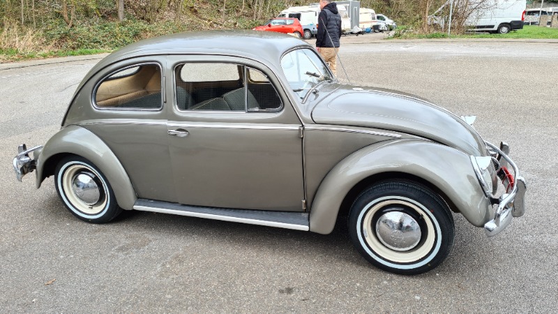 Hallo liebe Mitglieder, mein Name ist Eddy und komme aus dem Raum Stuttgart. Mein erster VW bzw. zweites Fahrzeug im Jahr 1990 war ein Käfer aus dem Baujahr 1972. Damals fuhr ich ein halbes Jahr mit meiner Freundin (heute Ehefrau) den Käfer, der in einem schlechten Zustand samt Motor war und danach aus Geldmangel keine Motorreparatur machen konnte und ihn abgegeben habe. Heute nach vielen Jahren habe ich meinen Traum verwirklicht, einen Käfer nach langem Suchen wieder gekauft. Es ist ein Ovali geworden, aus der Baureihe 1956 mit der Erstzulassung 20.03.1957. Geplant war allerdings ein Käfer mit Faltdach aus den 60-gern aber ich habe den Ovali in Polarsilber gesehen und mich verliebt. Näheres dazu werde ich demnächst posten, hier erstmal ein paar Bilder.