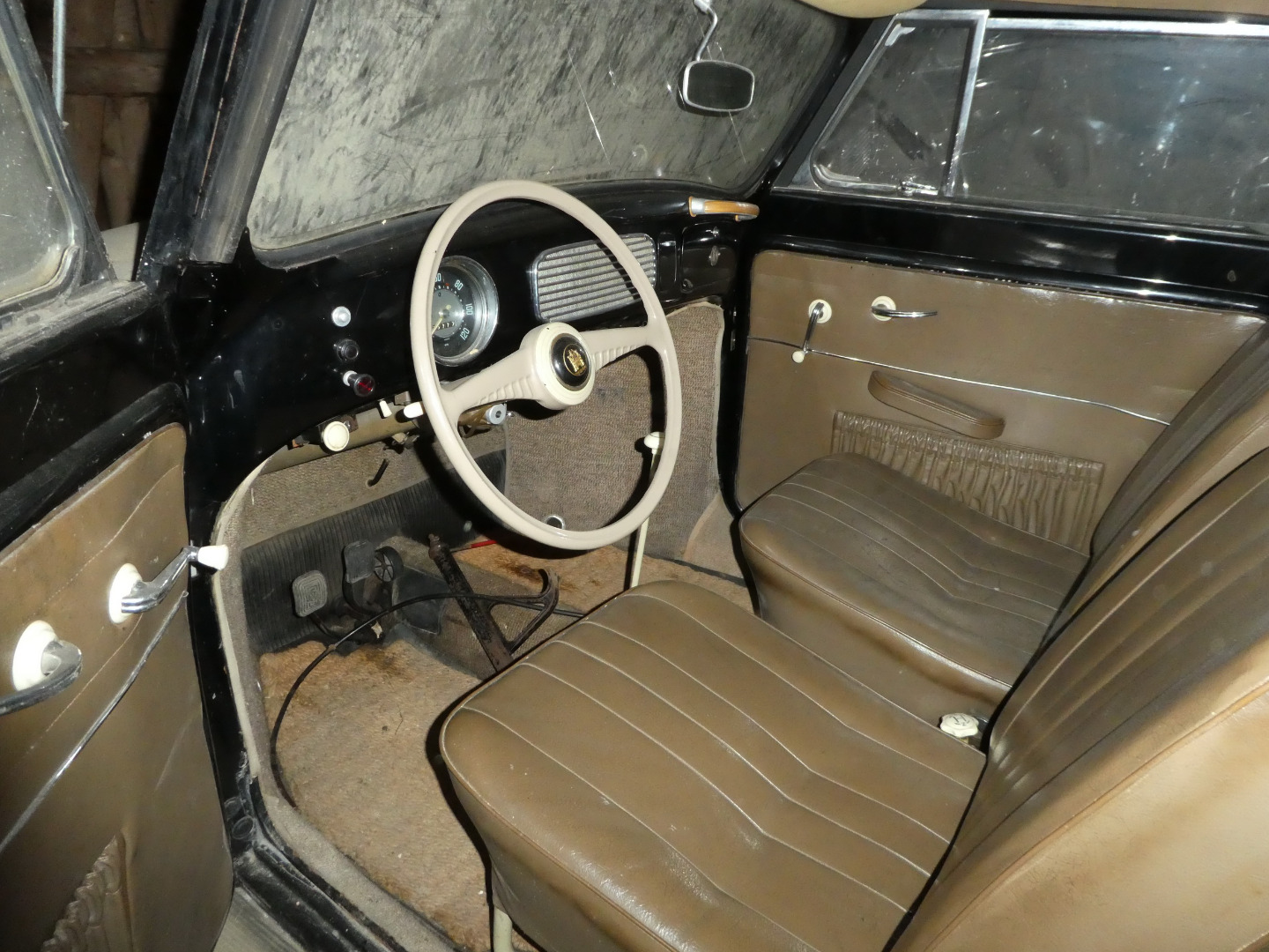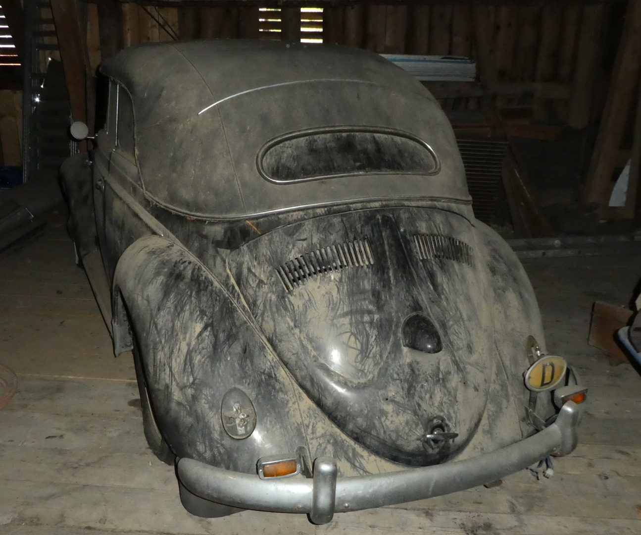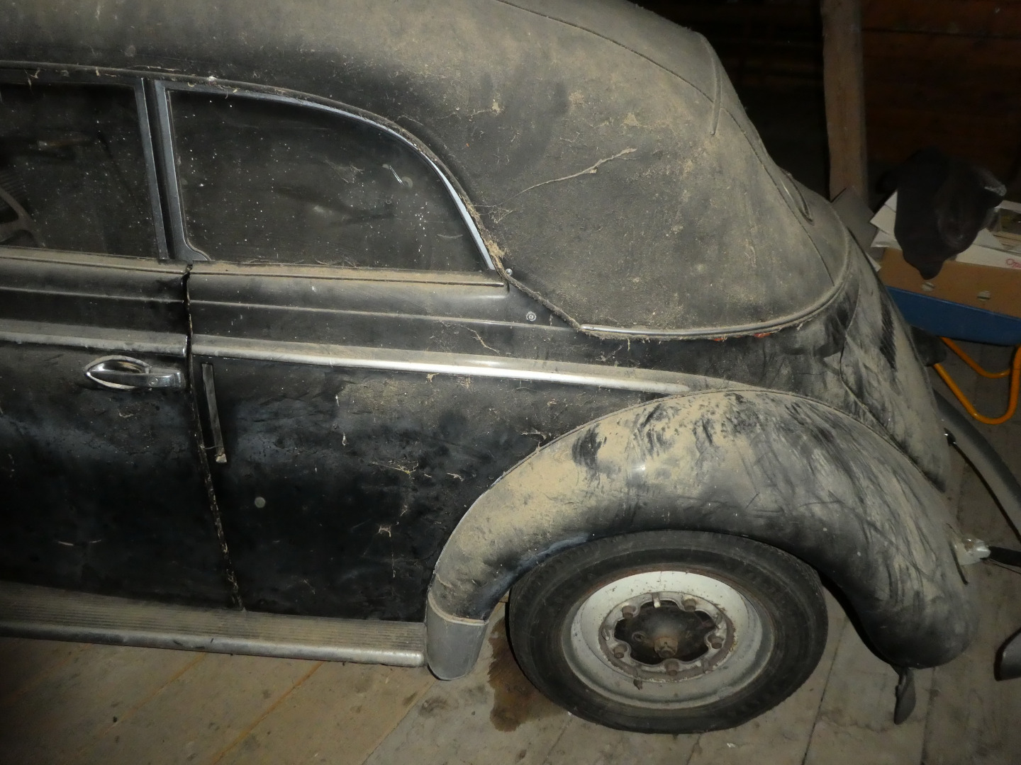 Dann wurde das Cabrio lauffähig weggestellt, leider völlig ohne Konservierung, aber immer trocken. Ungeschweisst, erster Lack (schon ziemlich angegriffen), unverbastelt.
