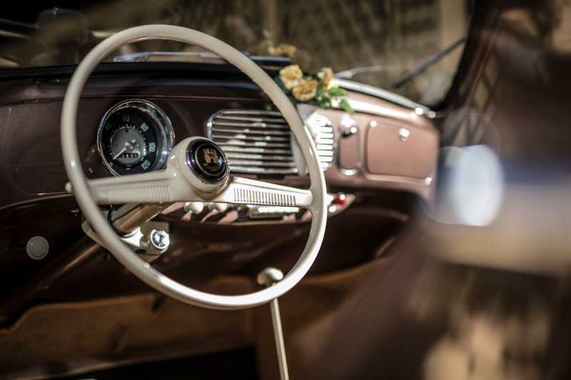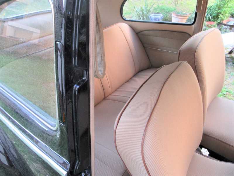 Innenhimmel, Sitzbezüge und Teppichteile ebenfalls aus Hamburg. Die alten Bezüge hatten aufgrund der 40-jährigen Lagerung Schäden durch Mäuse und Schimmel und waren nicht verwendbar. Bessere Türdrehfenster mit 1a Chrom sind gerade in Arbeit.