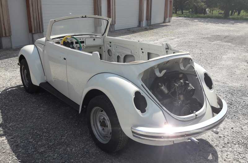Ebenfalls den Kübel bis auf die Karosseriearbeiten, die hat Patrick Stoll für mich hervorragend ausgeführt. Mein Kübel blieb wohl auf dem Rückzug in der Tschechei stehen, woher ich ihn auch habe. Das 1302 Cabrio ist noch nicht fertig, da muss ich noch einiges an Zeit und Geld investieren.