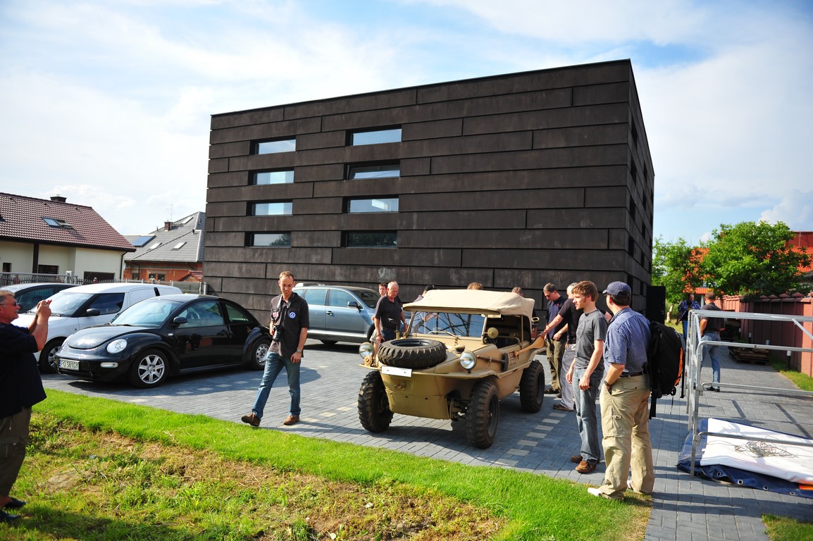 Die Werkstatt von Jacek war ein Erlebnis der besonderen Art. Nicht erwartet hatte ich zum einen das Äußere: Ein architektonisch sehr interessantes Gebäude und innen eine Werkstatt peinlichst sauber und aufgeräumt. Zu seinen Schätzen gehören der KdF und der Schwimmwagen, aber auch unzählige