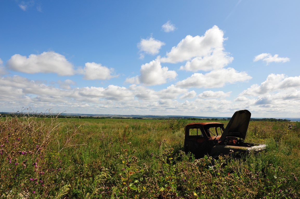Einmal fuhr ich mit meinem 49er einen Feldweg auf einen einsam gelegenen Berg hinauf, um die Weite bewusst zu genießen und einige Fotos zu schießen.