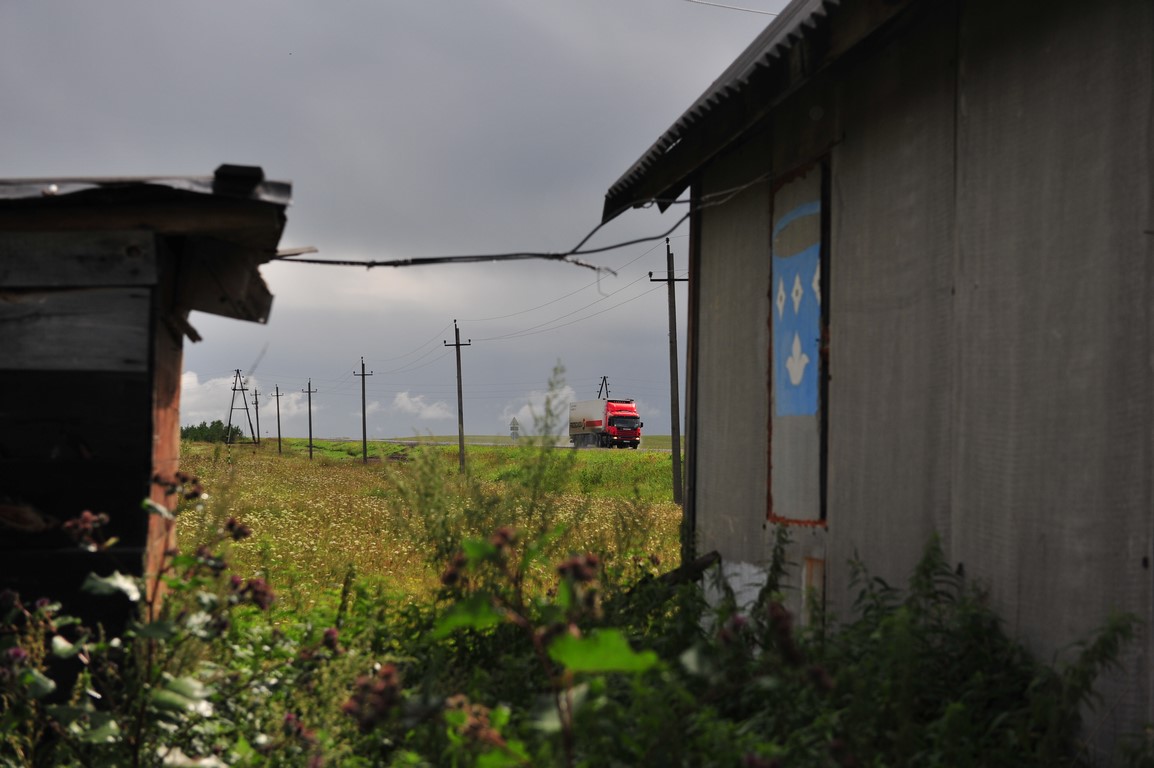 Mich begeisterten sehr diese endlos grüne Weite und die sanft geschwungenen Hügel, die sich vor mir bis zum Horizont ausbreiteten. Unten auf der Strasse wartete der Rest des Konvois und Sigurd schleppte ganz schnell seine Kamera hoch, um einige Filmshoots zu machen. Wenn ich gewusst hätte, wie knapp später noch der Grenzübertritt werden würde, hätte ich mir diese kleinen Eskapaden sicher zweimal überlegt. Jedenfalls kamen wir dennoch gut voran, die Landschaft wurde immer karger, es stellte sich dann kurz vor der Grenze diese einzigartige Stimmung ein, wenn man sich einer wirklich kritischen Grenze nähert. Und Russland-Mongolei war eine dieser Art, zumal wir immer noch nicht ganz sicher waren, ob unser Servicefahrzeug ohne Schwierigkeiten passieren könnte. Ganz kurz vor der Grenze passierten wir eine Polizeikontrolle und dann noch eine recht große russische Kaserne der Grenzsoldaten. In einem nahe gelegenen Kiosk deckten wir uns aus der Erfahrung heraus mit Lebensmitteln und Getränken ein. Wir wussten ja nicht, wie lange der Grenzübertritt dauern sollte.