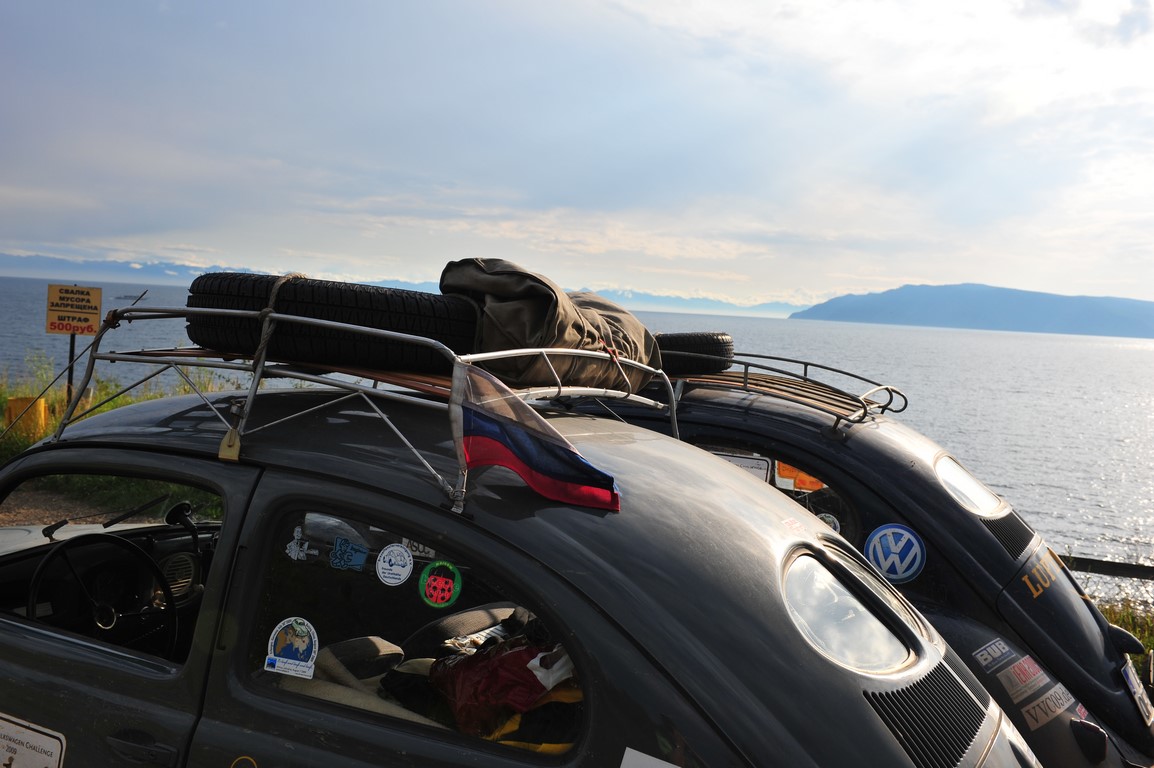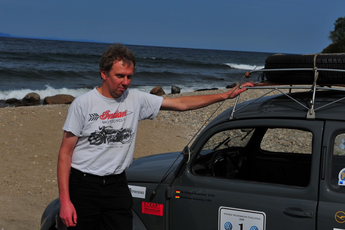 Es war wirklich toll, niemals nur 8 Grad wie behauptet. Ich schätzte die Wassertemperatur auf so um die 12-14 Grad, auch nicht eben ein Thermalbad! Natürlich machten wir ein VW Werbefoto mit Tiguan am Baikalsee und den Beach Boys. Ich muss auch sagen, dass dieser See etwas magisches hat: Das Licht, die Wellenmuster an der Wasseroberfläche und einfach die schiere Grösse umgeben von grün bewaldeten Berghängen, alles ist speziell und zusammen mit dem strahlend blauen Himmel unvergesslich.