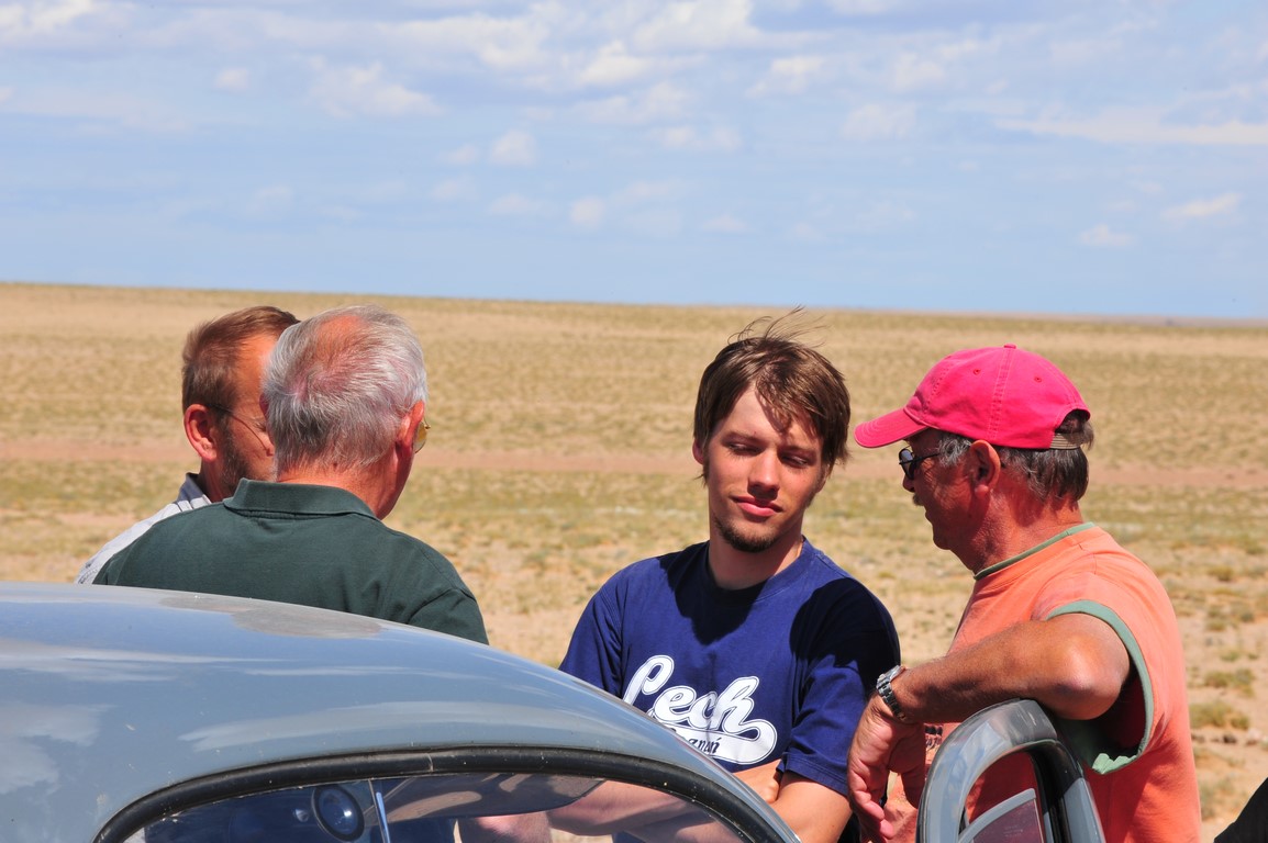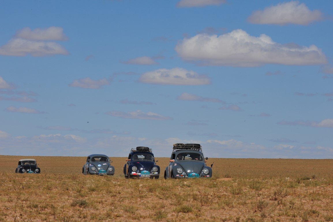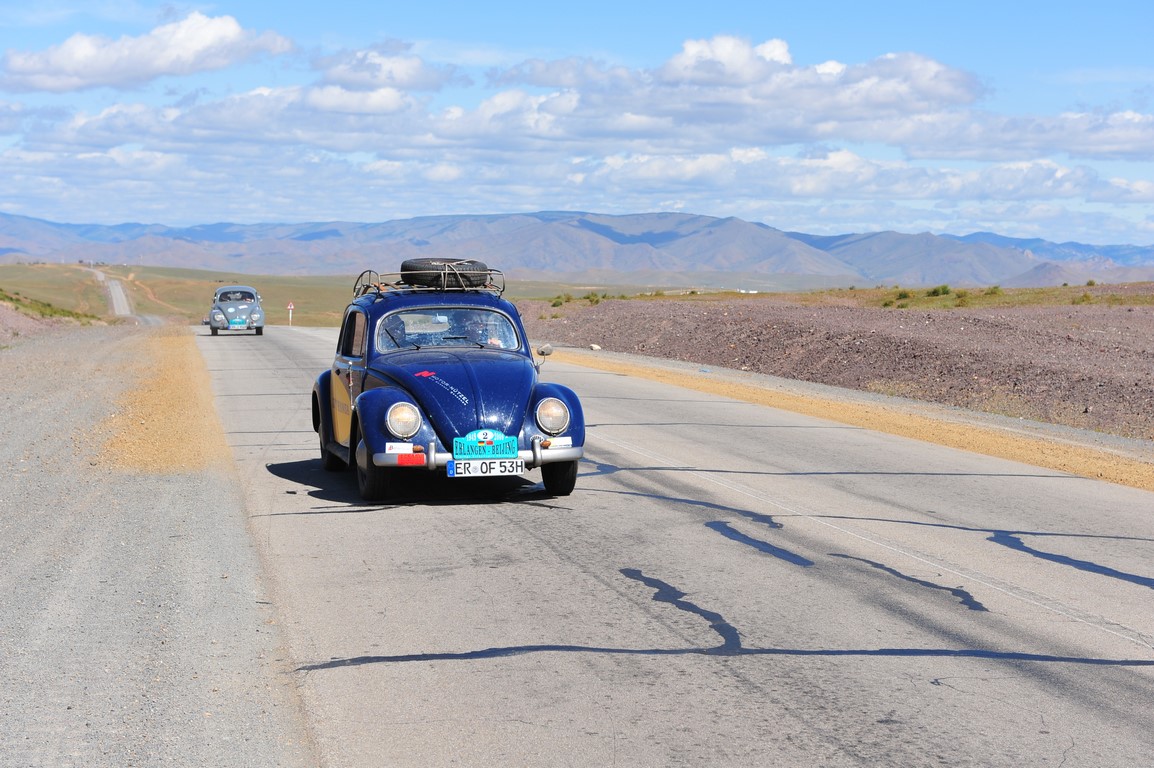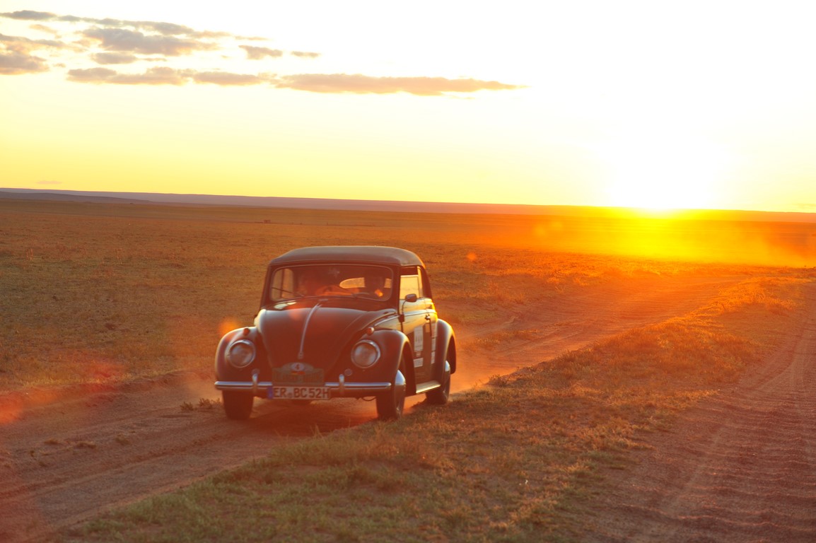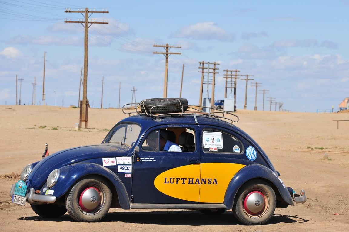 Die weiteren beiden Teams hatten sich vorab jeweils einen Standard Ovali gekauft, den sie für die Fahrt nutzten. Der Käfer von Team 4 war ein recht gut erhaltener und restaurierter Ovali aus dem Jahr 1956, den Bernd Boesenberg aus Baden-Württemberg von einem Polizisten gekauft hatte. Der Wagen bekam für die Fahrt dann Sonderausstattung wie z.B. gut gepolsterte Recaro-Sitze, Sicherheitsgurte, Tag-licht mit LEDs und die Rücksitzbank wurde entfernt und dafür eine Ladefläche eingelegt. Wir hatten ur-sprünglich auf Originalität wert gelegt. Ich wollte mich aber zu diesem Punkt vor der Reise nicht zu deutlich äußern. Es wurde uns allen während der Fahrt klar, dass Volkswagen die vielen Verbesserungen vor allem in der Anfangszeit des Käfers sehr wohl sinnfällig implementiert hatte, denn sowohl im Fahrkomfort als auch in der Zuverlässigkeit merkte man jedes Jahr Unterschied. So hatte der Ovali des Teams 4 neben ab und zu einer leeren Batterie keine Probleme während der ganzen Fahrt. Bernd war im Vorfeld für die genaue Strecken-planung zuständig und die Interfaceperson für die Reiseagentur in der Mongolei. Rainer hatte ich gebeten, in Deutschland vor der Reise die Presseaktivitäten zu managen und das gelang ihm durch seine Kontakte in Erlangen und Nürnberg außerordentlich gut.