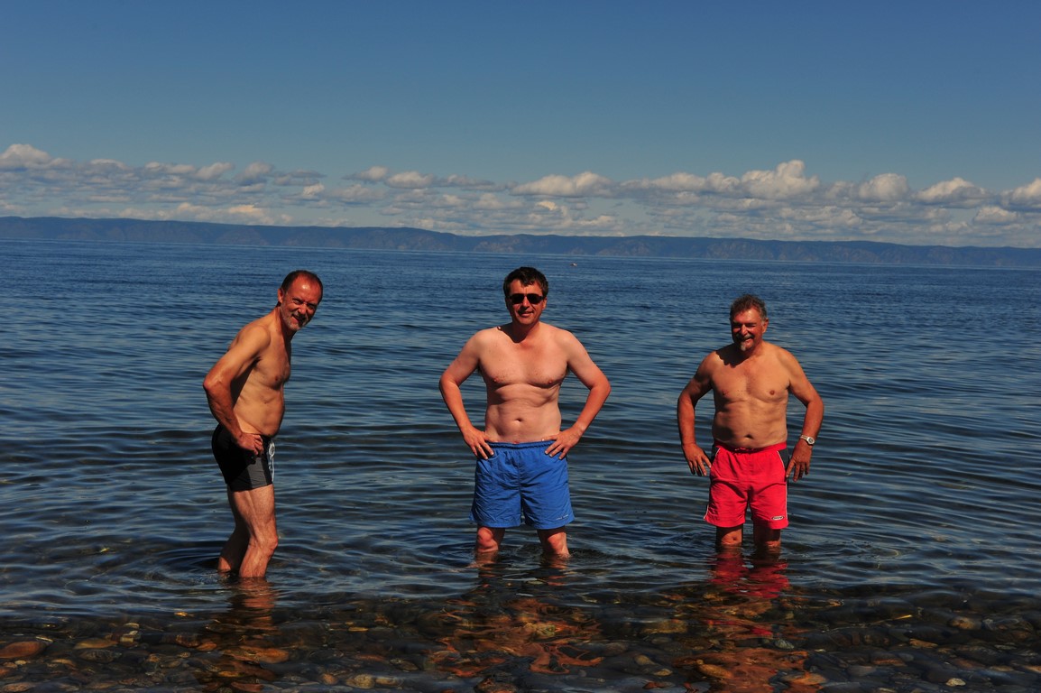 Gegen Mittag – kurz bevor Egon, Waldemar und ich dann wieder mit dem T5 nach Irkutsk zurück starteten – nahmen wir drei und Claus noch ein Bad im Baykalsee.