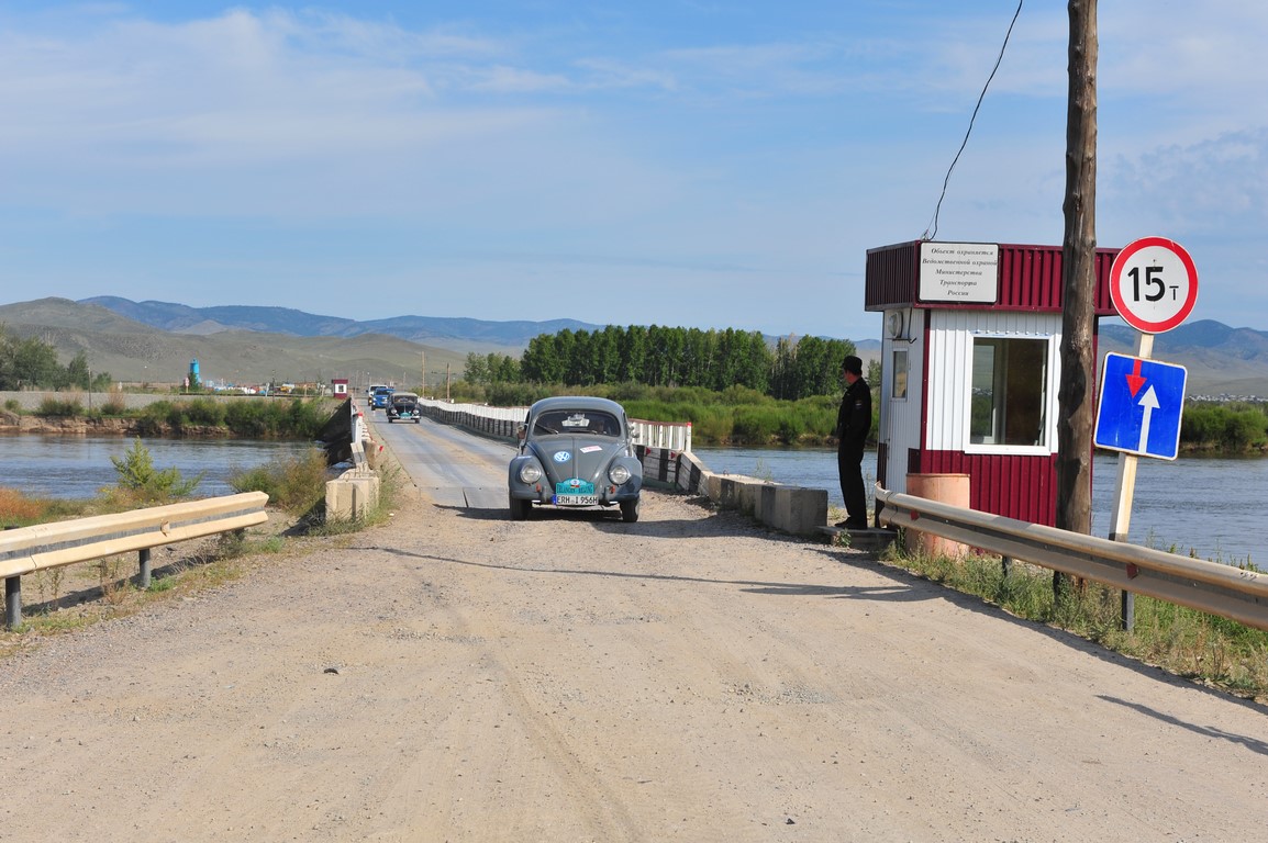 Alles verlief astrein und nach etwas mehr als zwei Stunden waren wir in Baikalsk, wo wir Heinrich noch die Chance gaben, seine Hände in den Baikalsee zu tauchen. Dann ging es weiter nach Ulan Ude, um das Team wieder einzuholen. Wir waren etwa 250 km vor Ulan Ude, als ich einfach mal so bei Rainer im Vorausteam anrief und ich dachte, er mache einen Spass, als er mir erzählte, dass der Torsionsstab am Cabrio gebrochen sei und das ca. 70 km vor Ulan Ude. Nun hatten wir zum Glück ja den alten Stab des 49ers und der passte auch für das Brezelcabrio. Also fuhr ich sofort rechts ran und informierte Egon, dass er nun vorausfahren müsse und das Team so schnell wie möglich aufholen. Heinrich und ich fuhren dann alleine auf weiter Flur am Baikalsee entlang und erreichten so gegen 21.00 Uhr das Team, welches schon in heftige Reperaturabeiten verwickelt war. Irgendwann wurde mir bewusst, dass wir nicht mal eine Landkarte oder etwas anderes zum Orientieren in unserem Wagen hatten. Aber es gibt auch nicht viel Auswahl zum Verfahren …