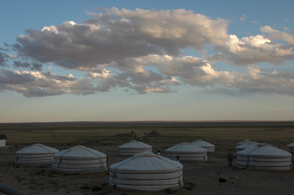 Wir erreichten Saynshand gegen 18.00 Uhr, kauften dort Proviant ein und hatten dann nur mehr 18km bis zu dem Jurtencamp „Gobi Sunrise“. Ab Saynshand verließen wir die transmongolische Eisenbahn und fuhren quer durch das Land. Was uns im Jurtencamp erwartete war guter Service und ein heraufziehender Sandsturm, der aber um uns herum vorbeiging.