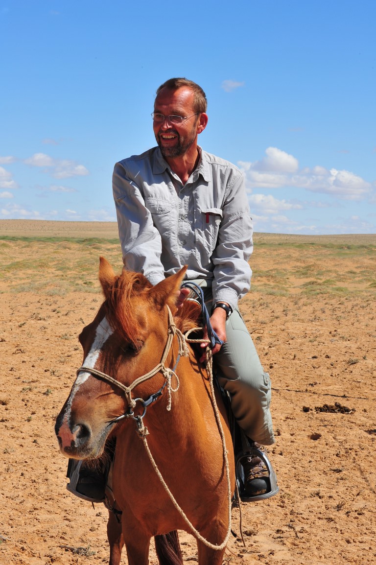 Die Fahrt durch die Gobi fing an diesem Tag bereits um ca. 8.00 Uhr an. Wir hatten eine gute Nacht im Zelt bzw. unter freien Himmel verbracht. Am frühen Morgen spürte ich sogar einige Regentropfen vom bedeckten Himmel fallen. Auch am zweiten Tag hatten wir mächtig Spaß am Fahren durch die Wüste, jedoch wurden die Wellenpisten für mich als 49er Fahrer mit den Hebelstossdämpfern und den kurzen Federungen an der Vorderachse immer mehr zum Problem. Die Ovalis schienen dieses nicht zu haben. Die Landschaft war größtenteils hügelig und wir mussten ab und an recht steile Anhöhen und Abfahrten überwinden. Dann wieder ging es im weichen Sand mit Vollgas in Parallelformation durch die Wüste.