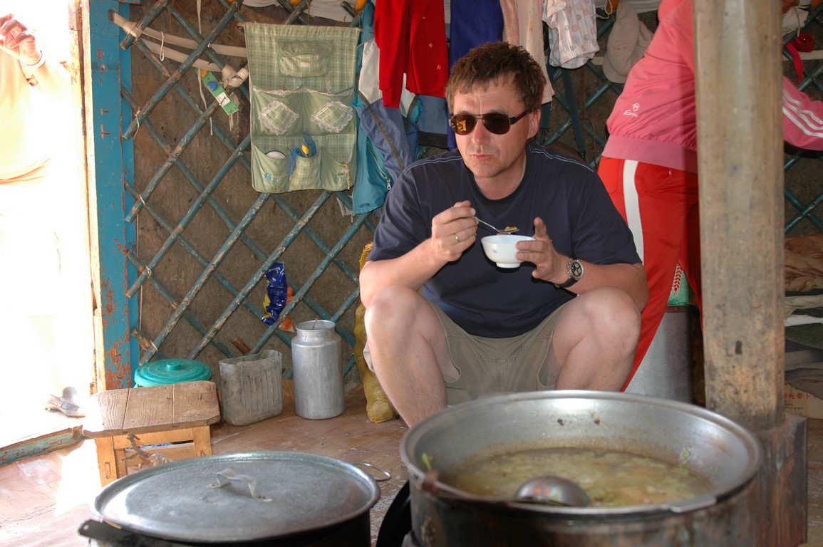 Bei der Abfahrt zurück zum Hotel gab es dann urplötzlich einen Sandsturm und ich hatte innerhalb von Sekunden Sand auf den Zähnen. Ein kleiner Vorgeschmack auf die Gobi. Abends gingen wir zusammen mit dem kleinen Siemens Team in Ulan Bator zum Mongolian Barbecue, eine sehr schmackhafte Erfahrung. Mein Fuß entwickelte sich recht gut dank der Versorgung durch Roland und der Hochlagerung im Fond meines 49ers, so dass ich auf eine Röntgenaufnahme verzichtete. Ich humpelte zwar noch im Barbecue, aber die Schmerzen ließen nach. Ich konnte auch schon wieder Auto fahren – was wollte ich mehr bei einer Rallye.