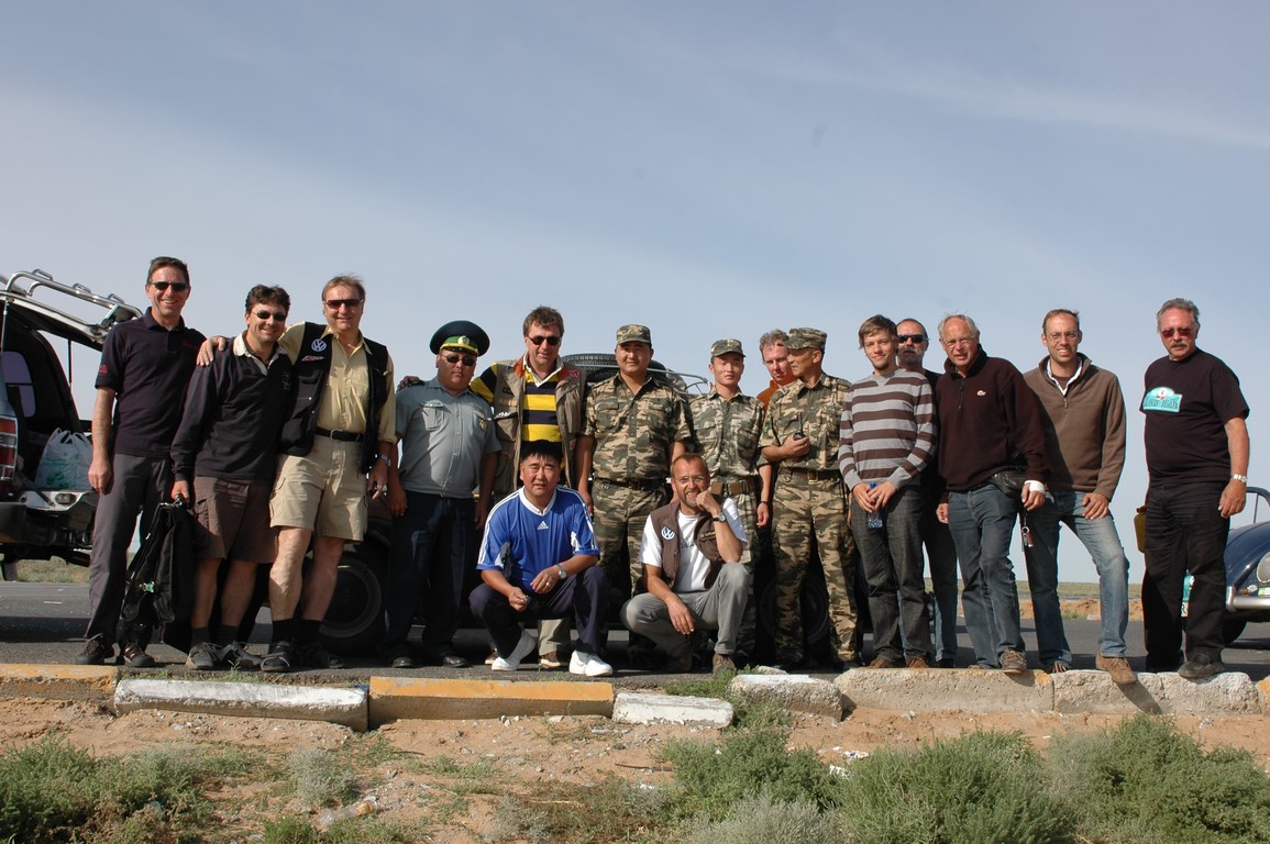 Letztlich aber haben es Waldemar und Egon doch geschafft und sie fuhren ca. 15 Minuten vor der Schließung der Grenze in den mongolischen Sektor ein. Die Erleichterung war groß, als der T5 vor Freude in Schlangenlinie fahrend auf unseren Sammelpunkt zukam. Wir begrüßten Egon und Waldemar mitten auf der Strasse fröhlich mit einer Laola-Welle. Die Mongolen guckten schon etwas komisch.