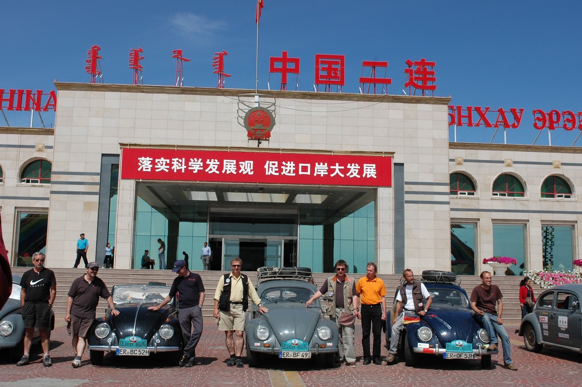 Unser Guide schleuste uns recht schnell durch die mongolische Seite und an der chinesischen ging auch alles zunächst gut voran, weil auch hier eine Reiseagentur uns unterstützte. Schon bei der Grenzabfertigung waren überall Journalisten mit Kameras und Fotoapparaten, um unsere Einreise zu filmen. Das half scheinbar zumindest bei der Grenzpolizei zur Beschleunigung.