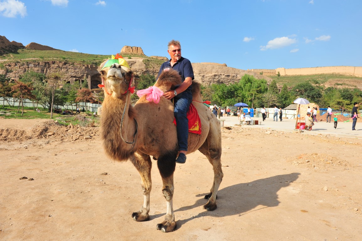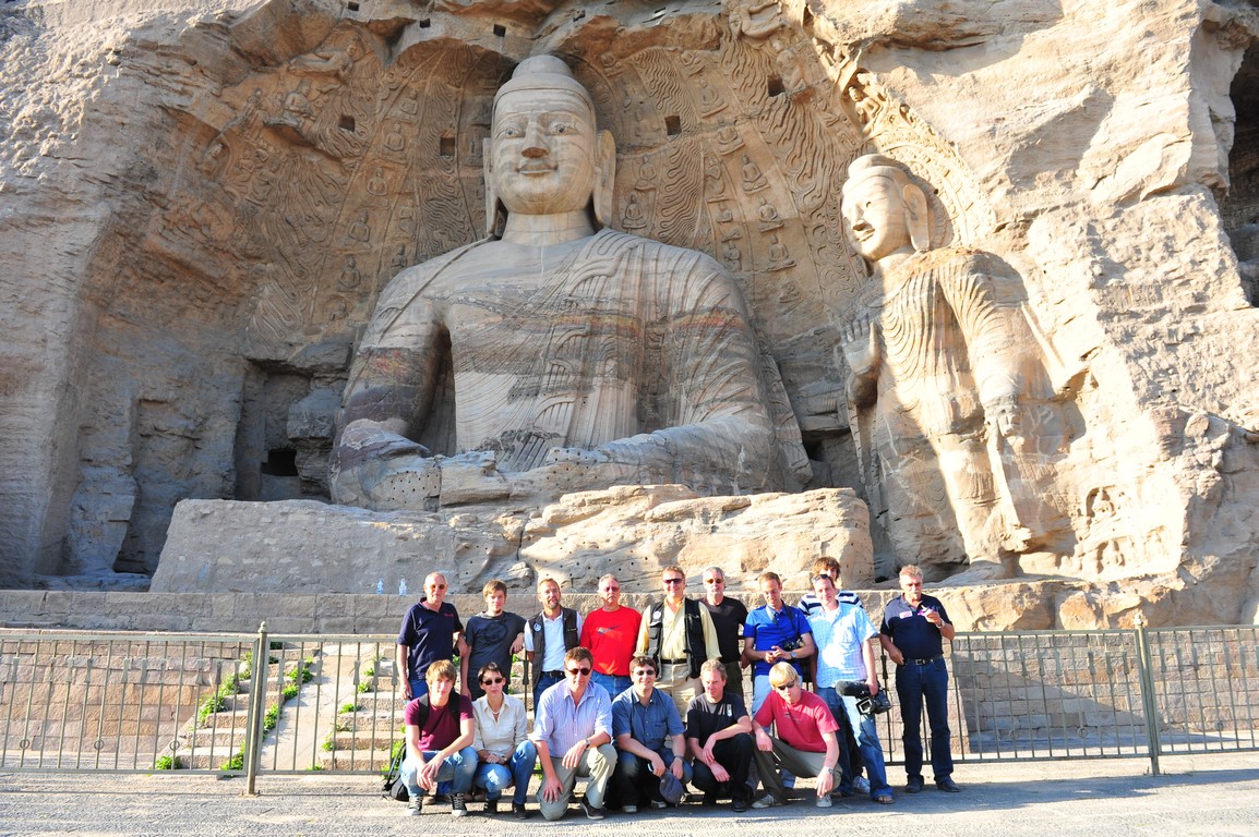 Hier wird für den Tourismus der Zukunft bereits gebaut. Die Grotten waren dann wirklich beeindruckend, 20000 Buddhas sollen in den hunderten von Grotten dargestellt sein. Auch war hier der größte Steinbuddha Chinas zu bestaunen. Die Wand-verzierungen waren sehens-wert und zum Glück auch recht gut erhalten. Nach der Führung ging es dann zurück ins Hotel und zum zweiten chinesischen Essen an diesem Tage. Auf dem Rückweg von den Grotten fuhren Moritz und Philipp bei mir mit, um das Gefühl der Fahrt über 11000 km zumindest für eine kurze Zeit gehabt zu haben. Aber vielleicht machen wir auch mal zusammen so eine Tour …