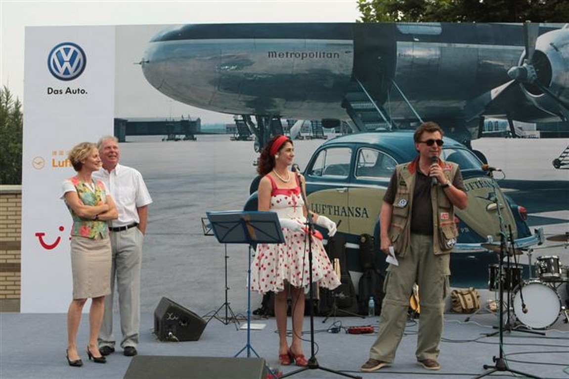 Der Käfer wurde als Lufthansa-Käfer dekoriert, um unseren Sponsor entsprechend zu positionieren. Das Retrodesign stand dem kleinen dunkelblauen Wagen sehr gut.