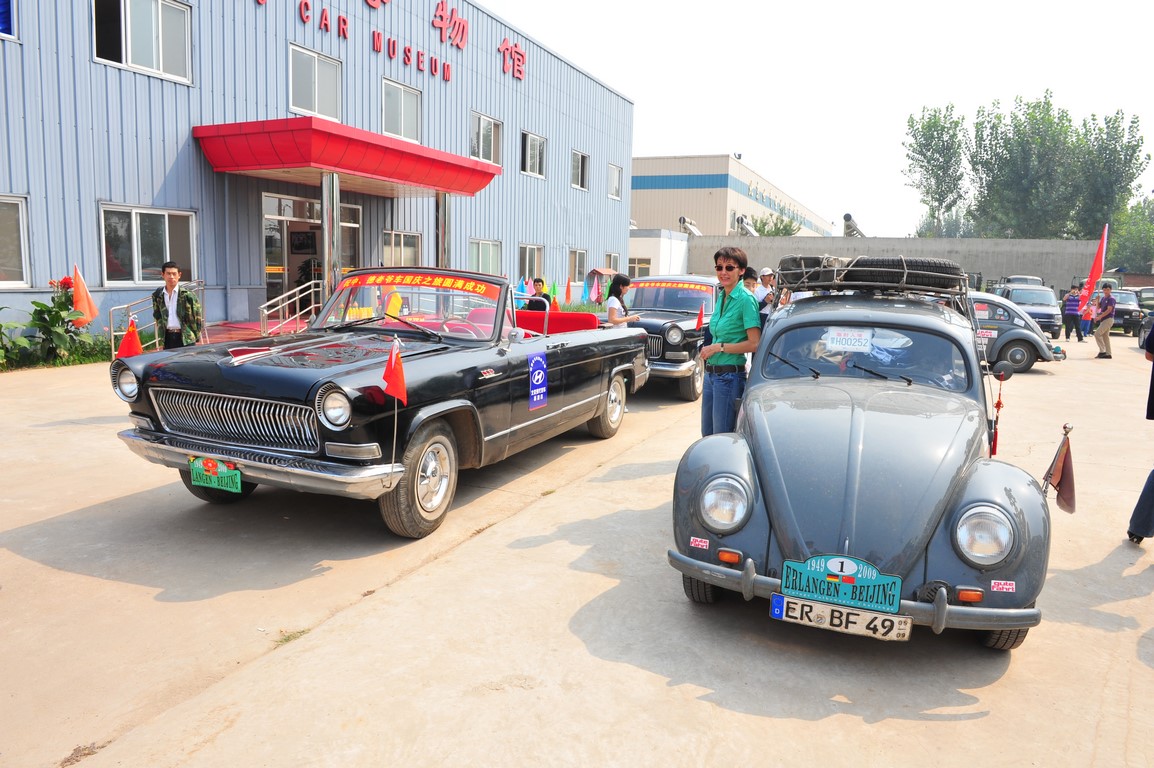 Nach dem triumphalen Empfang in der Botschaft machten wir am Tag nach der Ankunftsfeier einen letzten gemeinsamen Ausflug mit unseren fünf Käfern zum Peking Car Museum. Ich hatte mich mit dem Besitzer, Herrn Luo bereits vor der Reise getroffen und abgemacht, dass wir eine gemeinsame Fahrt mit seinen Red Flag (Hong Qi) Staatskarossen und den Käfern zur Großen Mauer machen würden.